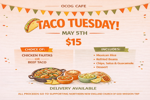 May 5th - OCOG Cafe - $15 per meal